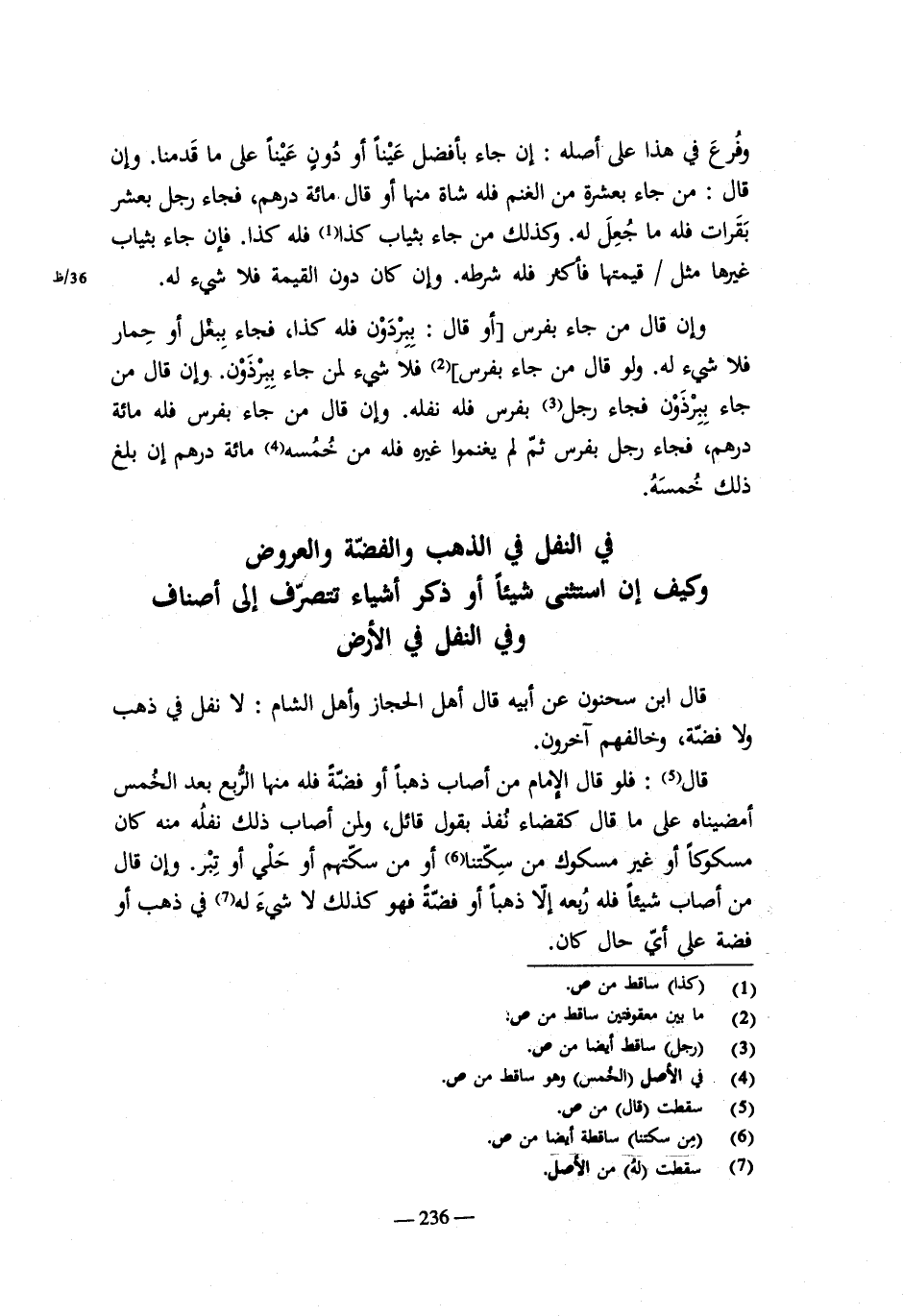 من كتاب ابن سحنون: وإذا نفل الإمام السلب للقاتل فضرب رجل علجاً ثم احتز آخر رأسه، فإن كانت الضربة أنفذت مقاتله وإن تآخر موته فالسلب للضارب دون المجهز. وإن لم ينفذ مقاتله فالسلب للثانى. وكذلك لو قطع أوداجه أو نثر حشوته وأجهز آخر عليه.