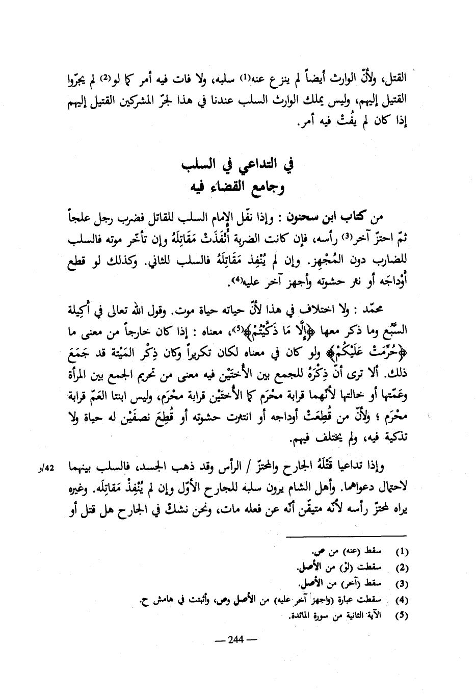 من كتاب ابن سحنون وإذا قال أمير الجيش للسرية: ما غنمتم فلكم بلا خمس فهذا لم يمض عليه السلف، فلا يجوز وإن كان فيه اختلاف، فإنى أبطله لأنه كقول شإذ حكم به فهو رد.