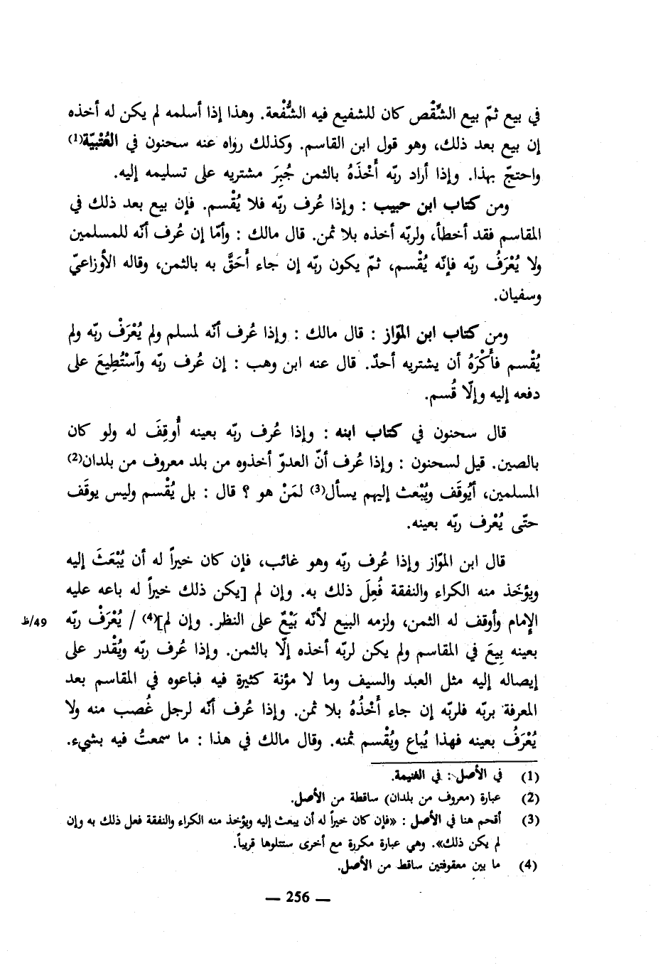 من كتاب ابن سحنون: روى ابن وهب عن ابن شهاب فى أم الولد تعرف فى المقاسم، يريد بعد أن قسمت، فليأخذها ربها بالقيمة. ولو عتقت لم تؤخذ فيها فدية. وقال مالك فى الموطأ: إذا وقعت فى المقاسم فليفدها الإمام لسيدها. فإن لم يفعل فعلى سيدها فداؤها. وروى عنه ابن القاسم أن عليه ثمنها الذى أخذها به، كان أكثر من القيمة أو أقل. فإن لم يكن معه ذلك اتبع به.