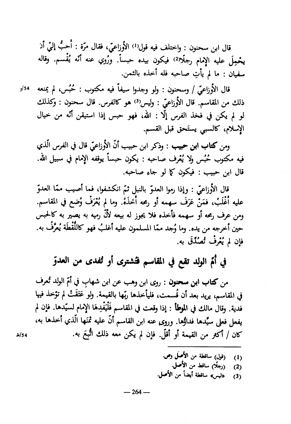 قال ابن سحنون: ويلزم عبد الملك أن يجيز تدبير صاحب السهمان لأنه يرى أن خدمتها له إذا لم يفدها ربها ما دام حياً. قلت: روى عن أشهب فى الحربى يسلم على أم ولد رجل أنها ترد على سيدها. قال: لا أعرف هذا له ولا لغيره من أصحابنا، وهذا غلط عليه.