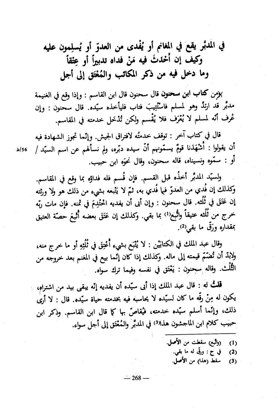 من كتاب ابن سحنون: قال سحنون فى الموصى بخدمته لرجل سنين ثم هو لفلأن، فأخذه العدو فى الخدمة فابتاعه رجل، فأنه يقال للمخدم أفده بالثمن. فإذا تمت خدمتك قيل لصاحب الرقبة: ادفع إليه ما فداه به وإلا فأسلمه إليه رقاً.