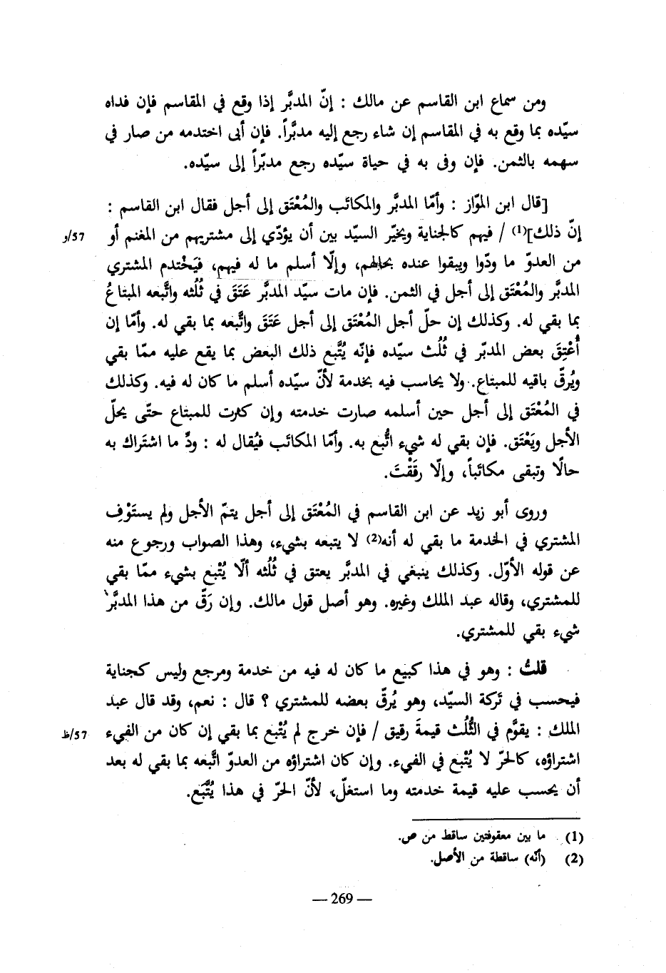 قال ابن سحنون: وهذا على مذهب سحنون وبعض أصحاب مالك أن ما حبسه البائع بالثمن فهو منه. قال ابن سحنون: وعلى قول ابن القاسم هو من المشترى، فعلى قوله لا خيار للبائع فى العبد. وقد لزم المشترى الثمن ومنه المصيبة، وهو يخير فى فدائه أو إسلأمه، ويغرم الثمن للبائع بكل حال. وإن شاء افتكه من السهمان أو أسلمه.