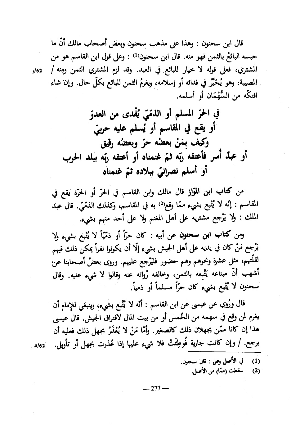 قال ابن سحنون قلت لسحنون: قال سفيان إذا كان فى الغنيمة من يعتق على بعض أهل المغنم من أقاربه فلا يعتق عليه شىء منه إذ لا يعلم قدر نصيبه منه إلا بعد القسم.