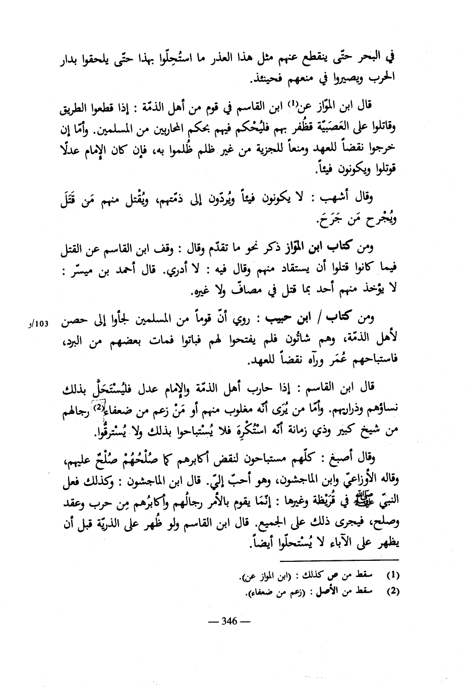 من العتبية: روى ابن القاسم عن مالك فى قول الله تعالى: (فإن كان من قوم عدو لكم وهو مؤمن فتحرير رقبة مؤمنة) لم يذكر/فيه دية. قال: هذا فى حرب النبى صلى الله عليه وسلم لأهل مكة، وفيهم المؤمن لم يهاجر فيصيبه المسلمون، والله سبحانه يقول: (ما لكم من ولايتهم من شىء حتى يهاجروا)، وإما قوله: (وان كان من قوم بينكم وبينهم ميثاق)، فهذا فى الهدنة التى كانت بين النبى صلى الله عليه وسلم ويبن المشركين أنه ان اصيب مسلم خطأ لم يهاجر فديته على المسلمين إلى قومه. وقد رد النبى صلى الله عليه وسلم أبا جندل، فكذلك ترد ديته لو قتل خطأ.