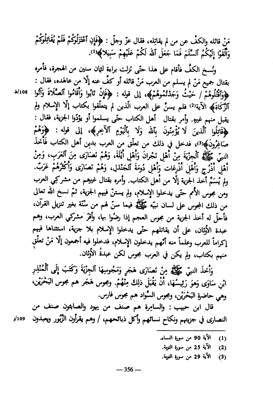 من كتاب ابن حبيب: وقد روى التغليظ فى النهى عن أخذ المسلمين مالك كراءها، وكره ان يزرعها ايضاً عاريةً. ونهى ابن عباس عمن يتقبل أرض أهل الذمة وقال: يجعل صغار الكافر فى عنقه.