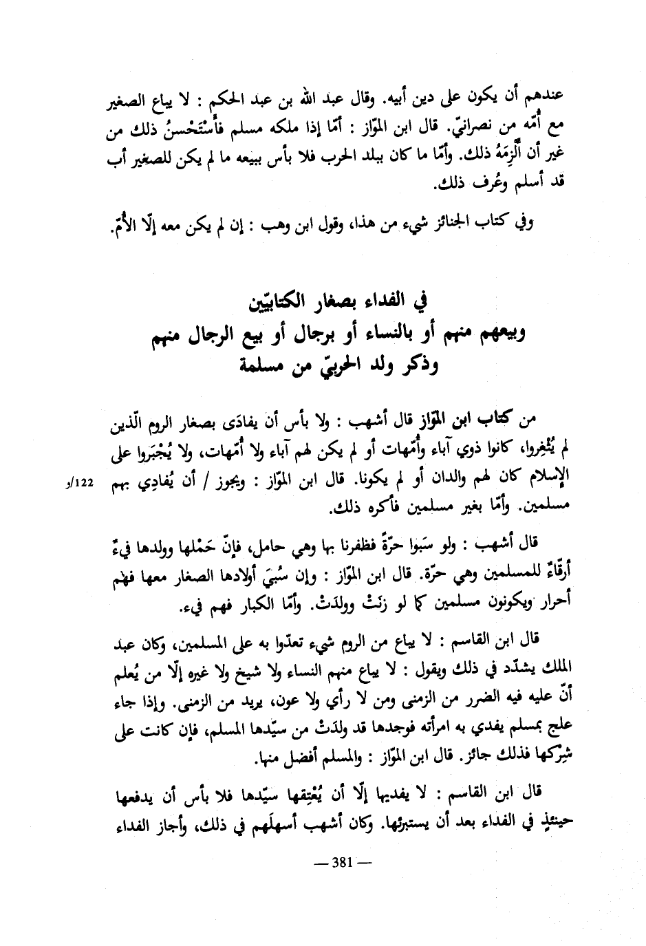 ثم وليها عمر بمثل ذلك حتى سأله على والعباس ان يوليها إليهما ففعل على ان يفعلا فيها كما فعل النبى صلى الله عليه وسلم وأبو بكر وعمر، ففعلا. فكان أزواج النبى صلى الله عليه وسلم يرتزقن منها حتى متن، فمضت صدقةً للمسلمين إلى اليوم ولم يرث أحد منها من ورثة من كان يجرى عليه النفقة منها، ولم يكن لأحد ممن ولى الأمر بعد النبى صلى الله عليه وسلم منها ما كان له، بل كانوا أسوةً للمسلمين. وكذلك ما أفاء الله بعده بغير إيجاف فهو لجميع المسلمين. وكطذلك قال عمر بن عبد العزيز ومالك وأصحابه.