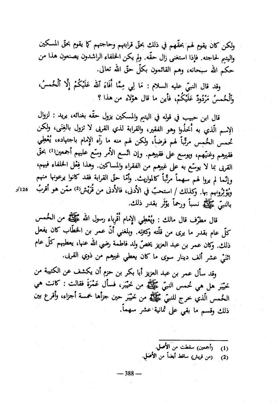 قال ابن حبيب: اختلف أئمة العدل فى التسوية والتفضل فى القسم بين الناس، فسأوى بينهم الصديق، فقال له عمر: أتجعل الفقراء المهاجرين الذين