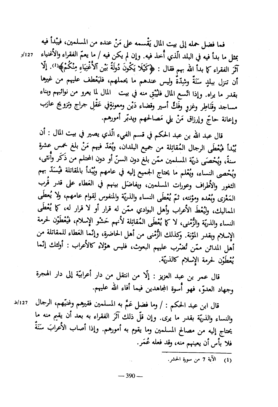 قال ابن حبيب: وهذا التفضيل بعينه، ولم ير مالك لمن سب السلف فى الفىء حقاً لقول الله تعالى: (والذين جاءوا من بعدهم يقولون ربنا اغفر لنا ولإخواننا الذين سبقونا بإلايمان) إلاية، فهذه صفة من له فيه حق.