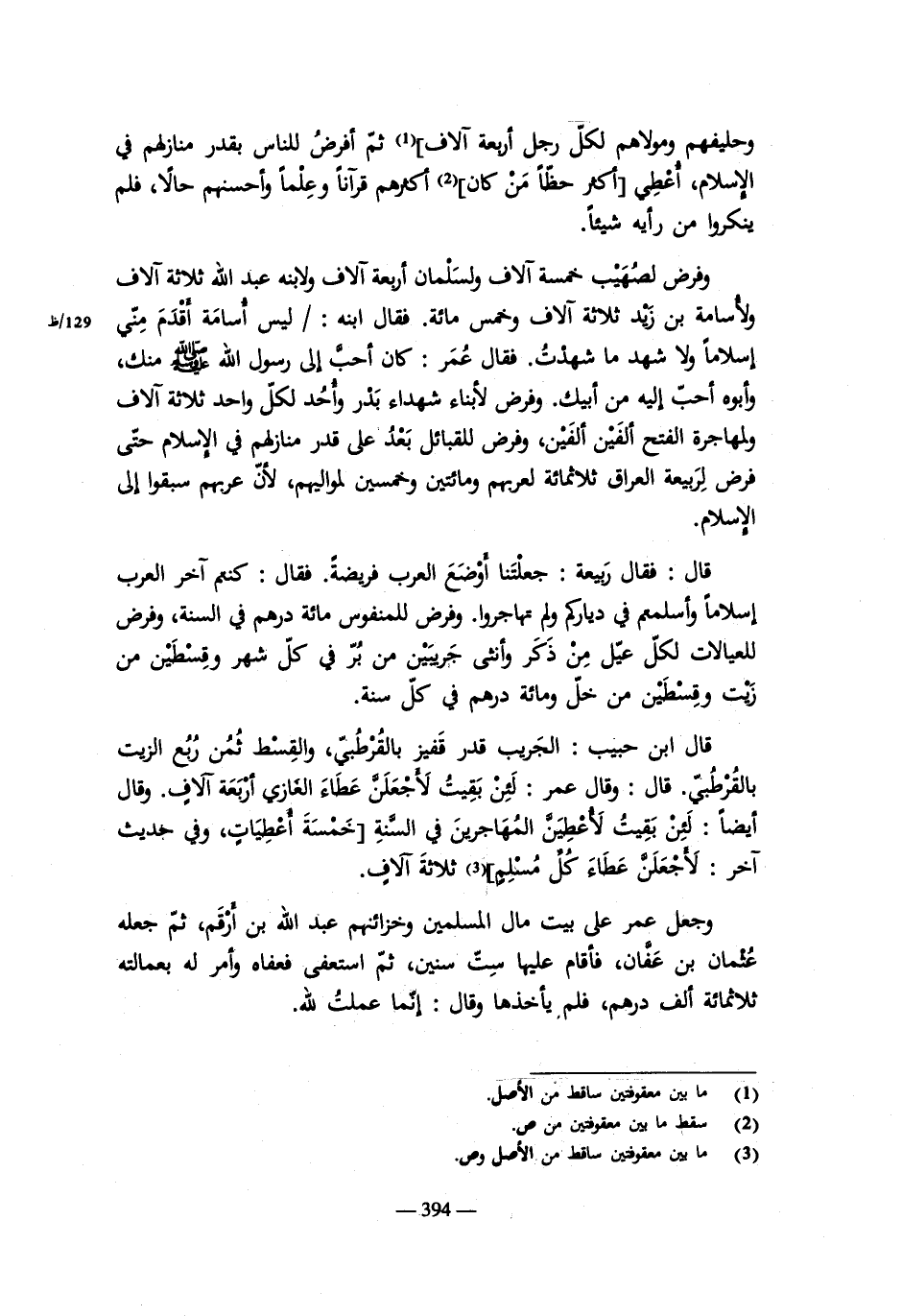 قال ابن حبيب: فكل ما أفاد الوالي فى ولايته من مال سوى زرقه أو قاض فى قضائه أو متولى أمر للمسلمين فللإمام أخذه منه للمسلمين. وكان عمر إذا ولى أحداًأحصى ماله لينظر ما يتزيد. ولذلك شاطر عمر العمال حين كثرت ولم يقدر على تمييز ما ازدادوه بعد الولاية، قال مالك. قال: وشاطر أباهريرة/وأبأموسى وغيرهما.