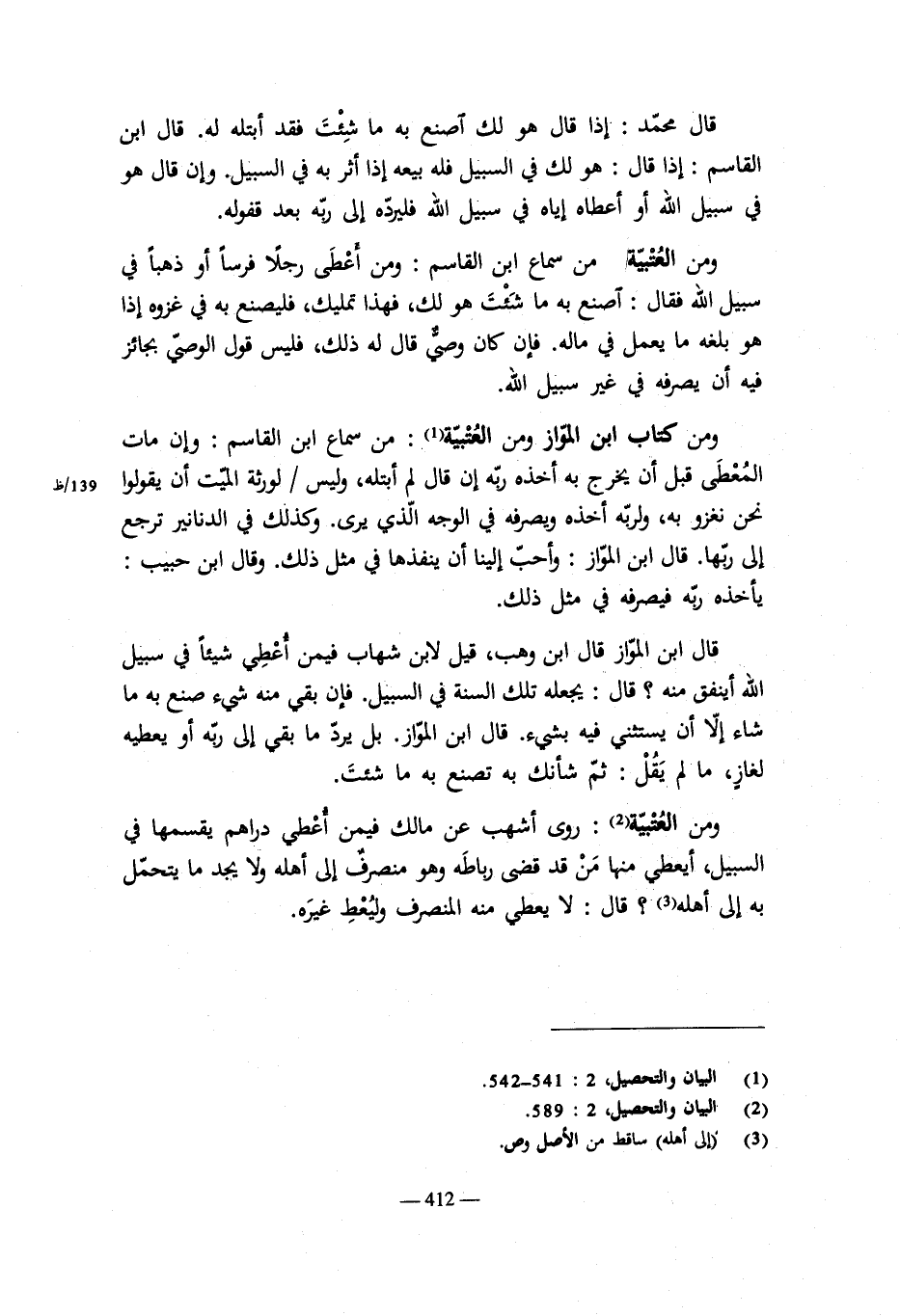 قال الأوزاعى: ومن أعطى نبلاً فى السبيل فلا يرم بها بين إلاغراض ويتعلم بها الرمى، وقاله سحنون. قال الأوزاعى فى السبى يؤمرون بسوقه، يكرى عليه فلا بأس أن يحمل السبى على الفرس الحبس (ان لم يقسم السبى. وان قسم فأكره حمل ما اشتراه لنفسه.