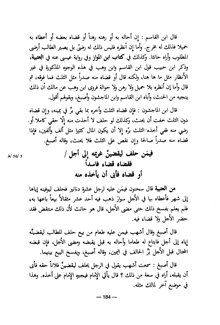 قال أصبغ: سمعت أشهب يقول فى الرجل يحلف ليقضين فلاناً حقه فأبى أن يقبله، أراه فى سعة من ذلك؟ قال يأتى الإمام فيجبره الإمام على أخذه. وهذا فى موضع آخر لمالك مثله.