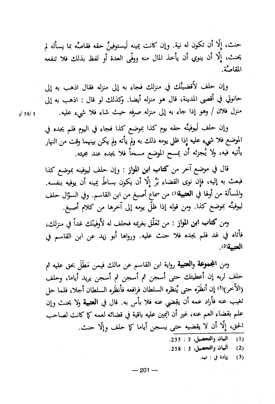 ومن المجوعة والعتبية رواية ابن القاسم عن مالك فيمن مطل بحق عليه ثم حلف لربه إن أعطيتك حتى أسجن ثم أسجن ثم أسجن يريد أياما، وحلف الآخر إن أنظره حتى ينظره السلطان فرافعه فأنظره السلطان أجلا، فلما حل تغيب عنه فأراد عمه أن يقضى عنه فلا بأس به. قال فى العتبية ولا يحنث إن علم بقضاء العم عنه، غير أن اليمين عليه باقية فى قضائه لعمه كما كانت لصاحب الحق، إلا أن لا يقضيه حتى يسجن أياما كما حلف وإلا حنث.