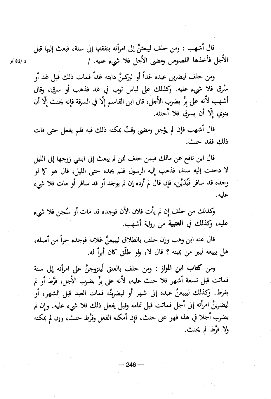 ومن حلف ليصربن عبده غداً أو ليركبن دابته غداً فمات ذلك قبل غد أو سرق فلا شىء عليه. وكذلك على لباس ثوب فى غد فذهب أو سرق، وقال أشهب لأنه على بر بضرب الأجل، قال ابن القاسم إلا فى السرقة فإنه يحنث إلا أن ينوى إلا أن يسرق فلا أحنثه.