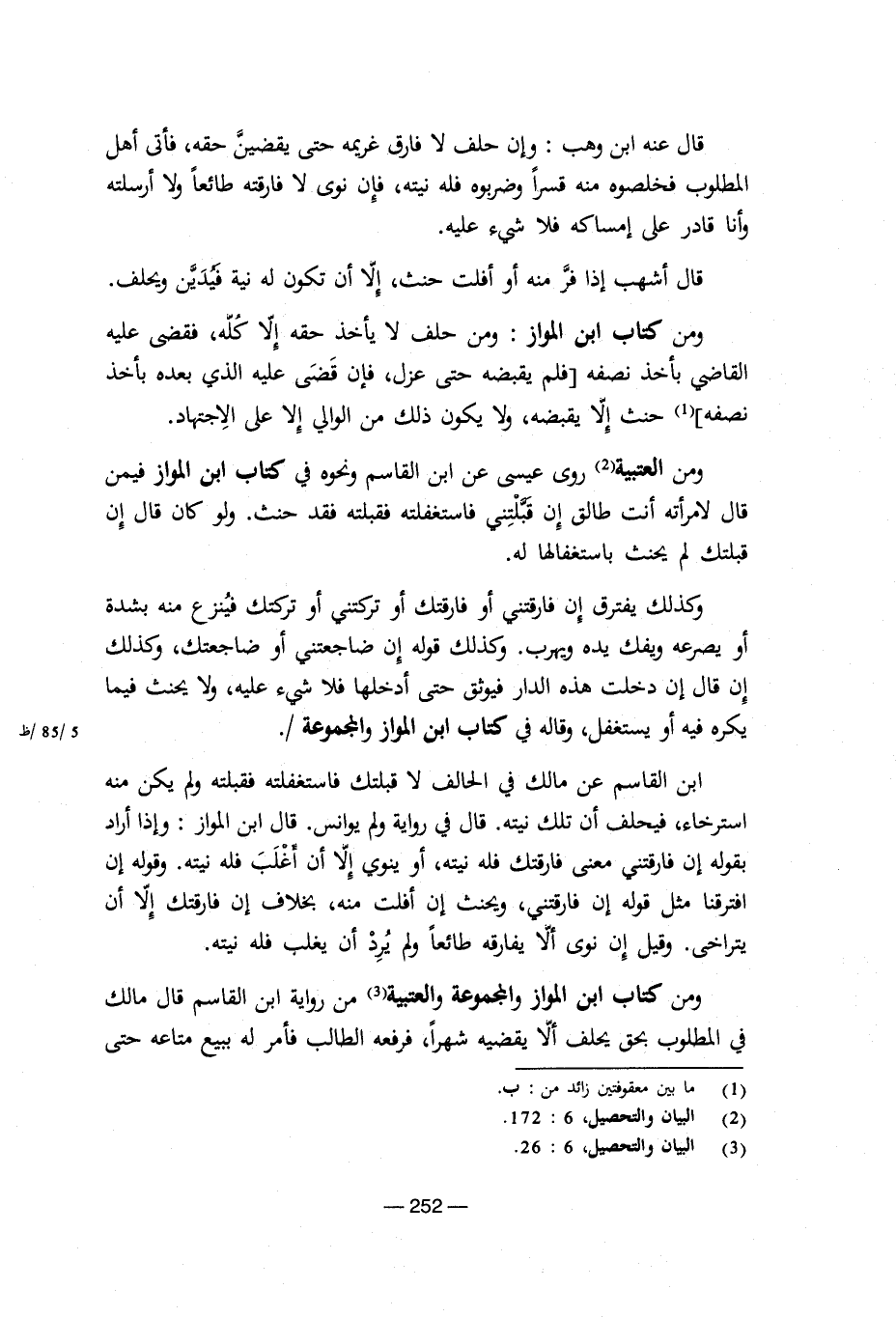 وكذلك يفترق إن فارقتنى أو فارقتك أو تركتنى أو تركتك فينزع منه بشدة أو يصرعه ويفك يده ويهرب. وكذلك قوله إن ضاجعتنى أو ضاجعتك، وكذلك إن قال إن دخلت هذه الدار فيوثق حتى أدخلها فلا شىء عليه، ولا يحنث فيما يكره فيه أو يستغفل، وقاله فى كتاب ابن المواز والمجموعة.