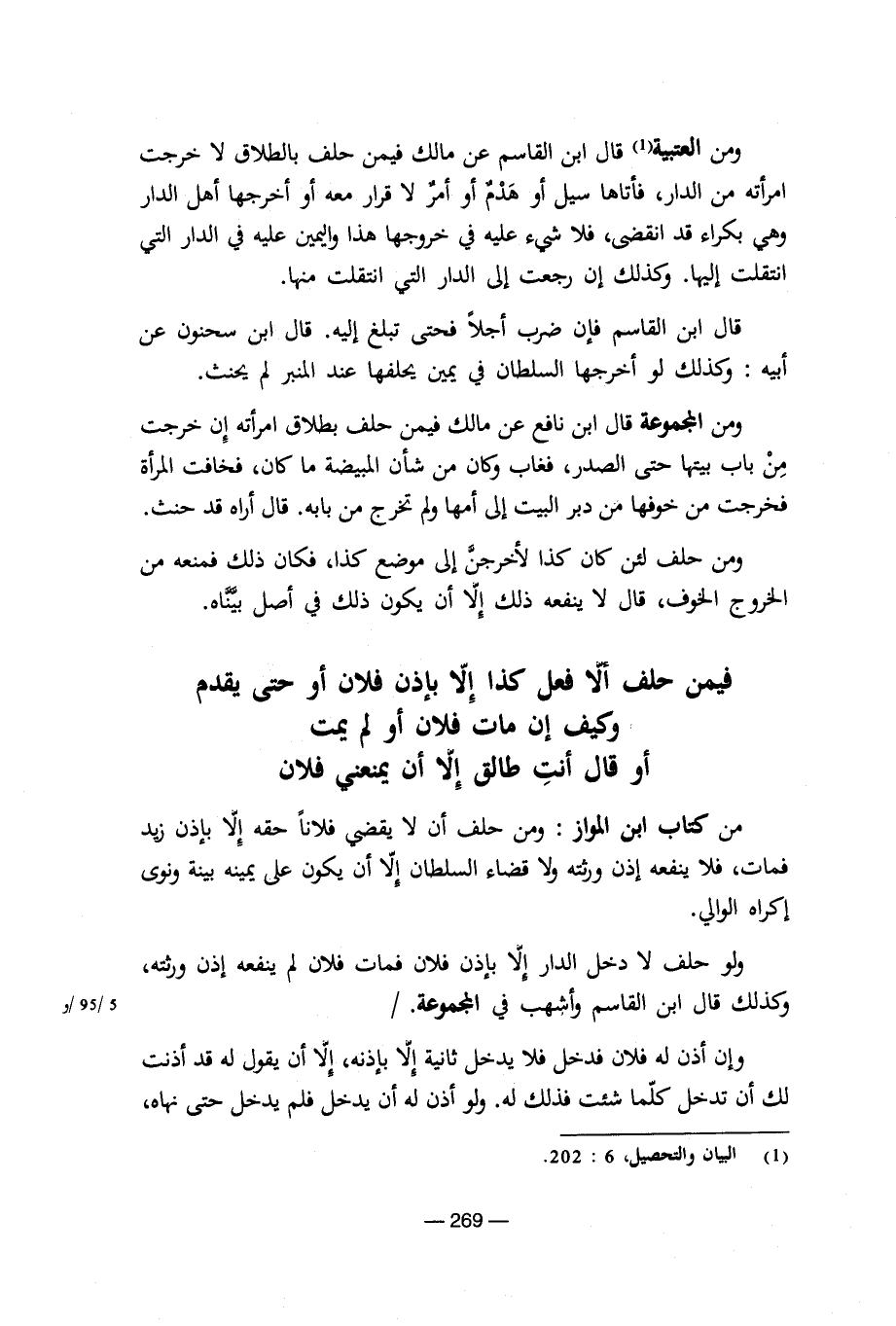 ومن العتبية قال ابن القاسم عن مالك فيم حلف بالطلاق لا خرجت امرأته من الدار، فأتاها سيل أو هدم أو أمر لا قرار معه أو أخرجها أهل الدار وهى بكراء قد انقضى، فلا شىء عليه فى خروجها هذا واليمين عليه فى الدار التى انتقلت إليها. وكذلك إن رجعت إلى الدار التى انتقلت منها.