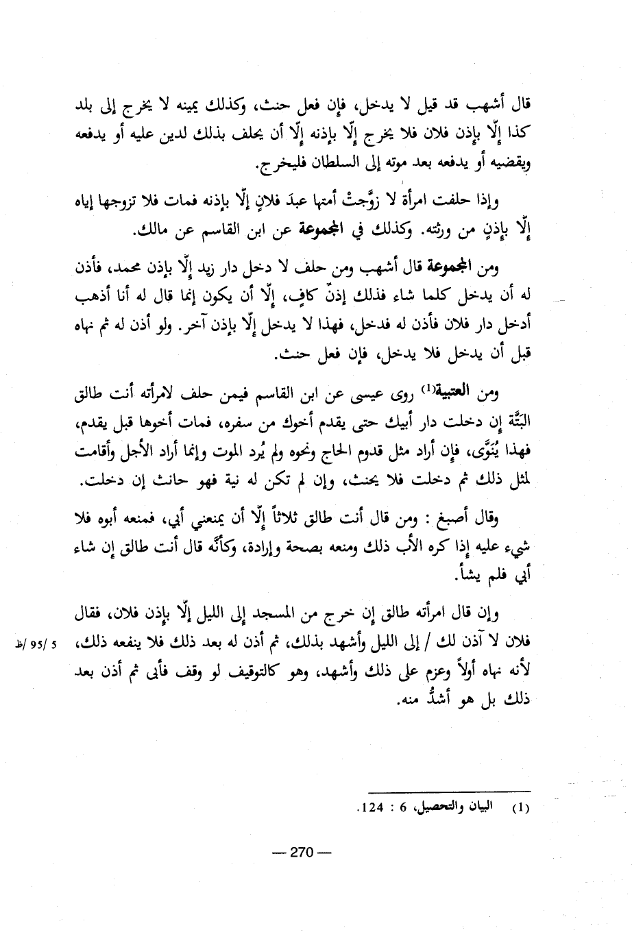 ومن العتبية روى عيسى عن ابن القاسم فيمن حلف لامرأته أنت طالق البتة إن دخلت دار أبيك حتى يقدم أخوك من سفره، فمات أخوها قبل يقدم، فهذا ينوى، فإن أراد مثل قدوم الحاج ونحوه ولم يرد الموت وإنما أراد الجل وأقامت لمثل ذلك ثم دخلت فلا يحنث، وإن لم تكن له نية فهو حانث إن دخلت.