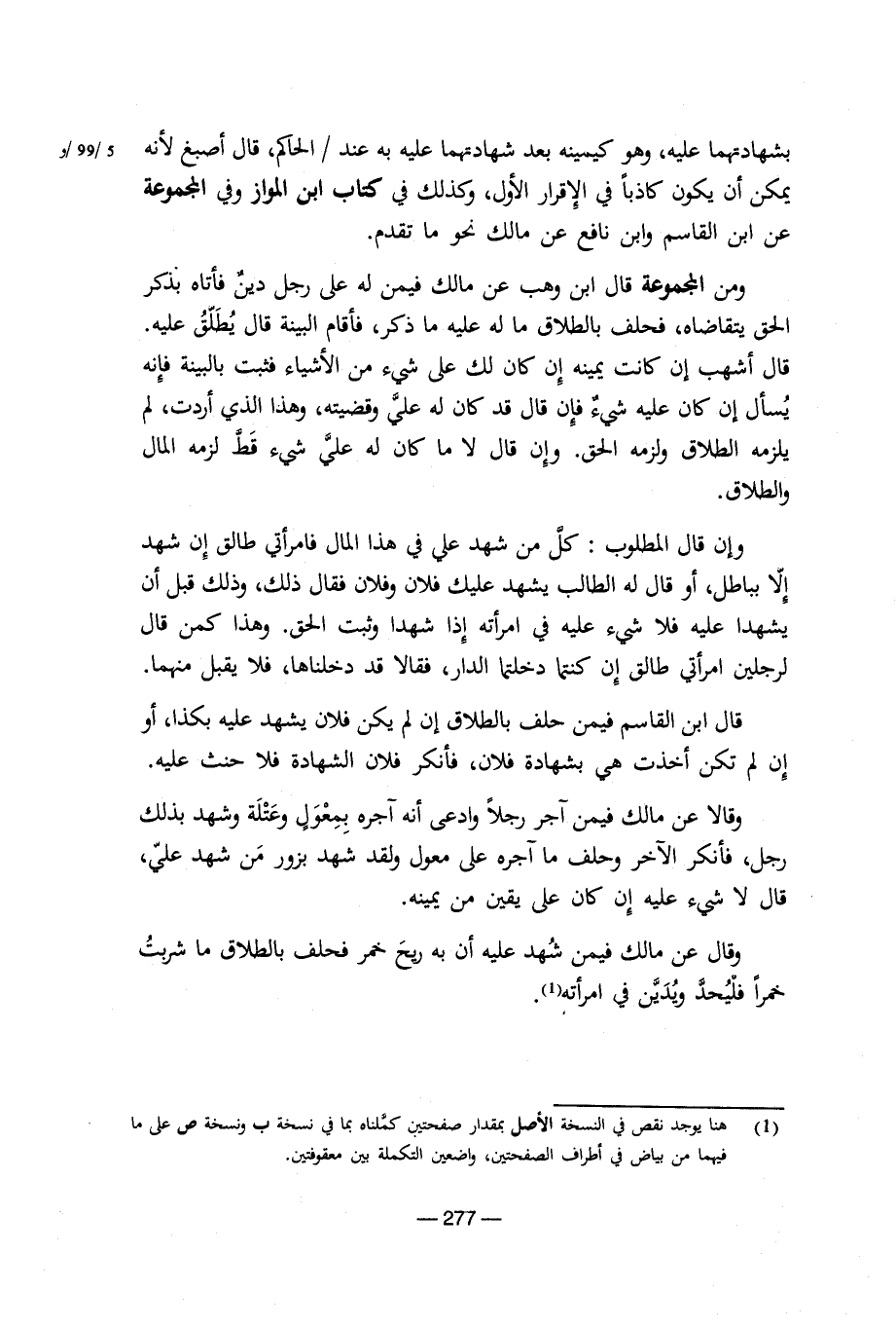 بشهادتهما عليه، وهو كيمنيه بعد شهادتهما عليه به عند الحاكم، قال أصبغ لأنه يمكن أن يكون كاذباً فى الإقرار الأول، وكذلك فى كتاب ابن المواز وفى المجموعة عن ابن القاسم وابن نافع عن مالك نحو ما تقدم.