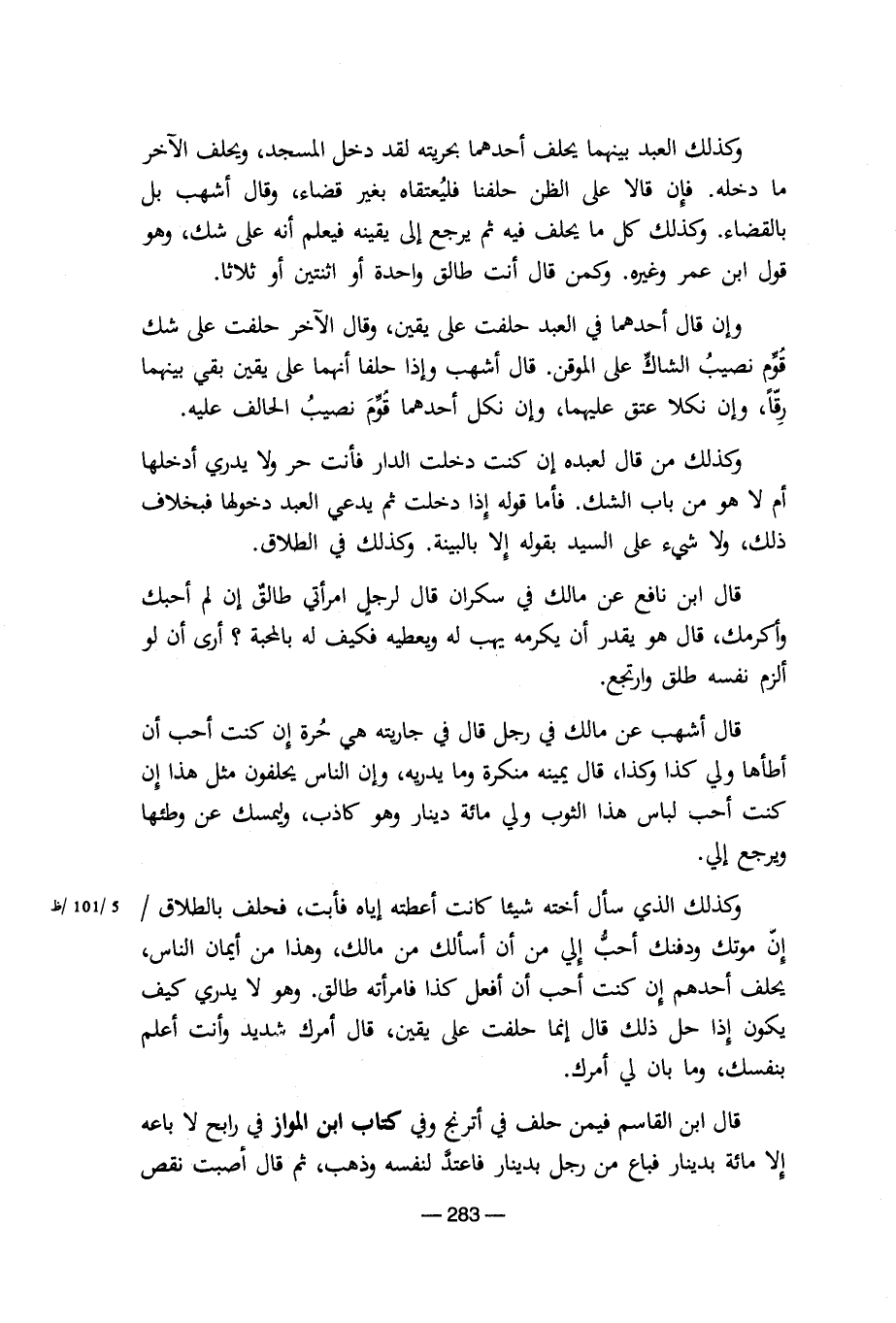 وكذلك الذى سأل أخته شيئا كانت أعطته إياه فأبت، فحلف بالطلاق إن موتك ودفنك أحبه إلى من أن أسألك من مالك، وهذا من أيمان الناس، يحلف أحده إن كنت أحب أن أفعل كذا فامرأته طالق. وهو لا يدرى كيف يكون إذا حل ذلك قال إنما حلفت على يقين، قال أمرك شديد وأنت أعلم بنفسك، وما بان لى أمرك.
