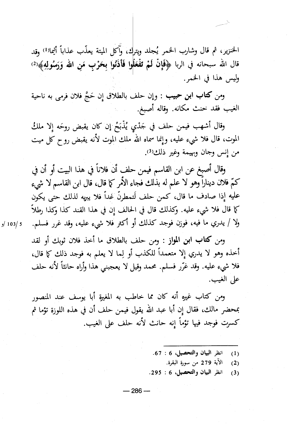 ومن كتاب غيره أنه كان مما خاطب به المغيرة أبا يوسف عند المنصور بمحضر مالك، فقال إن أبا عبد الله يقول فيمن حلف أن فى هذه اللوزة تؤما ثم كسرت فوجد فيها تؤما إنه حانث لأنه حلف على الغيب.