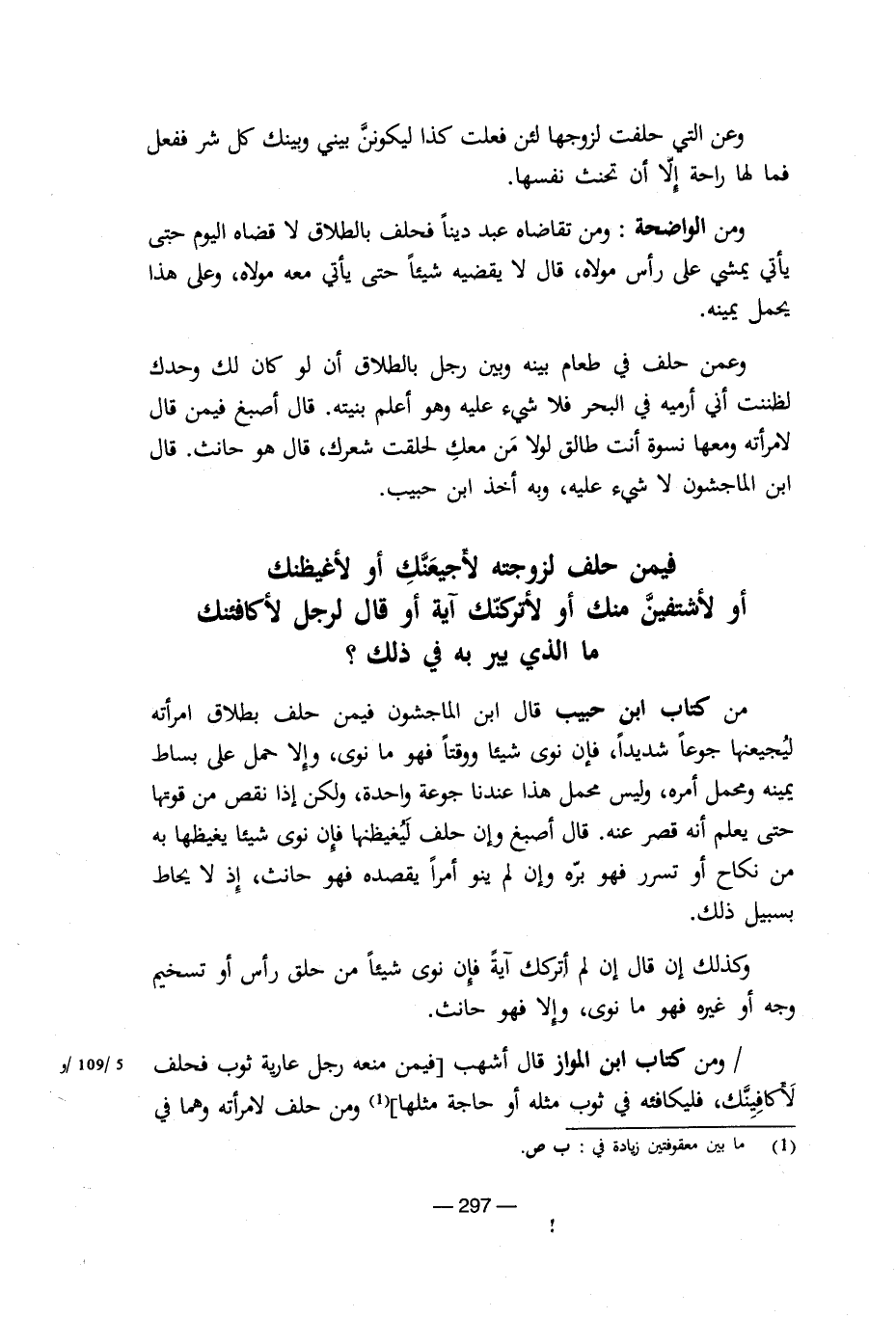 وعن التى حلفت لزوجها لئن فعلت كذا ليكونن بينى وبينك كل شر ففعل فما لها راحة إلا أن تحنث نفسها.