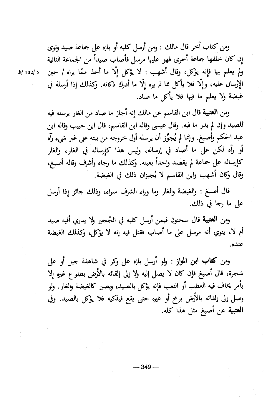 ومن العتبية قال ابن القاسم عن مالك أنه أجاز ما صاد من الغار يرسله فيه للصيد وإن لم يدر ما فيه. وقال عيسى وقاله ابن القاسم، قال ابن حبيب وقاله ابن عبد الحكم وأصبغ. وإنما لم يجوز أن يرسله أول خروجه من بيته على غير شيء رآه أو رآه لكن على ما أصاد في إرساله، وليس هذا كإرساله في الغار، والغار إرساله على جماعة لم يقصد واحداً بعينه. وكذلك ما رجاه وأشرف وقاله أصبغ، وقال وكان أشهب وابن القاسم لا يجيزان ذلك في الغيضة.
