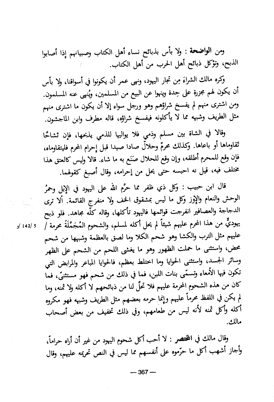 وكره مالك الشراء من تجار اليهود، ونهى عمر أن يكونوا في أسواقنا، ولا بأس أن يكون لهم مجزرة على حدة وينهوا عن البيع من المسلمين، وينهى عنه المسلمون.
