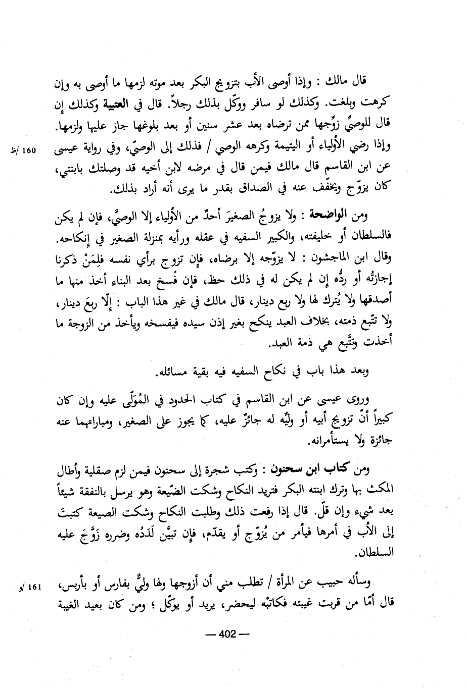 وسأله حبيب عن المرأة تطلب مني أن أزوجها ولها ولي بفارس أو باريس، قال أما من قربت غيبته فكاتبه ليحضر، يريد أو يوكل، ومن كان بعيد الغيبة