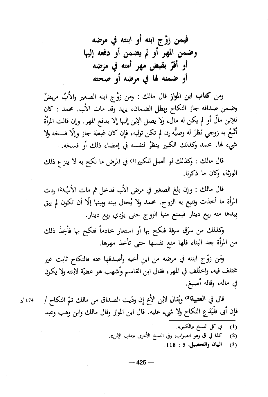 قال في العتبية ويقال الابن الأخ إن وديت الصداق من مالك تم النكاح فإن أبى فليدع النكاح ولا شيء عليه. قال ابن المواز وقال مالك وابن وهب وعبد