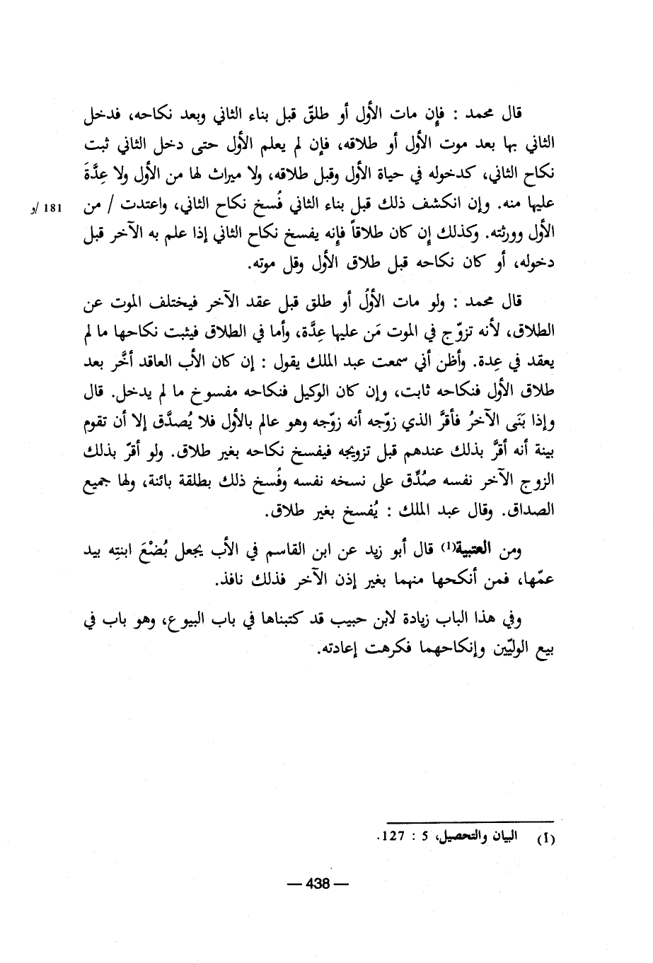وفي هذا الباب زيادة لابن حبيب قد كتبناها في باب البيوع، وهو باب في بيع الوليين وإنكاحهما فكرهت إعادته.