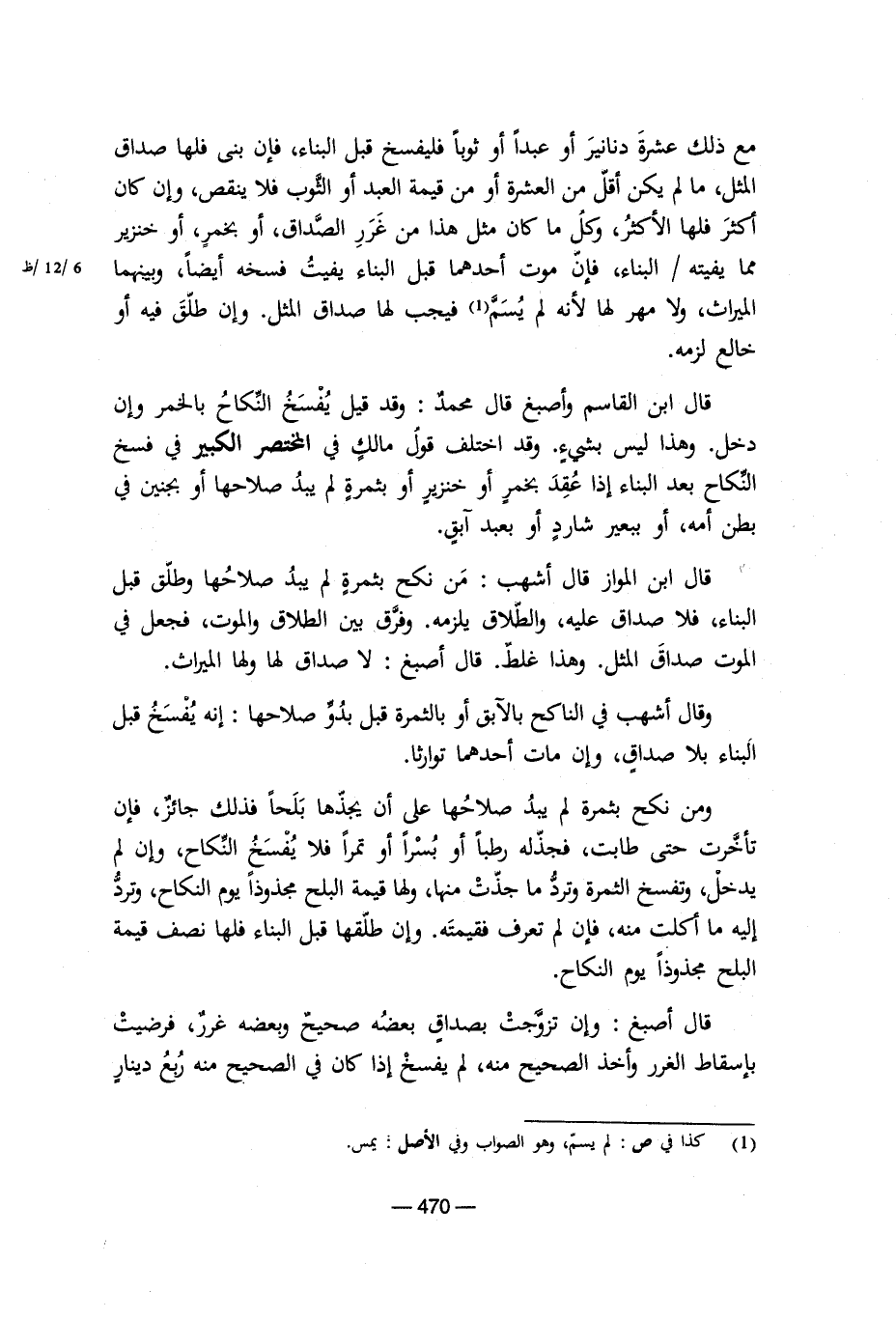 قال ابن القاسم وأصبغ قال محمد: وقد قيل يفسخ النكاح بالخمر وإن دخل. وهذا ليس بشيء. وقد اختلف قول مالك في المختصر الكبير في فسخ النكاح بعد البناء إذا عقد بخمر أو خنزير أو بثمرة لم يبد صلاحها أو بجنين في بطن أمه، أو ببعير شارد أو بعبد آبق.