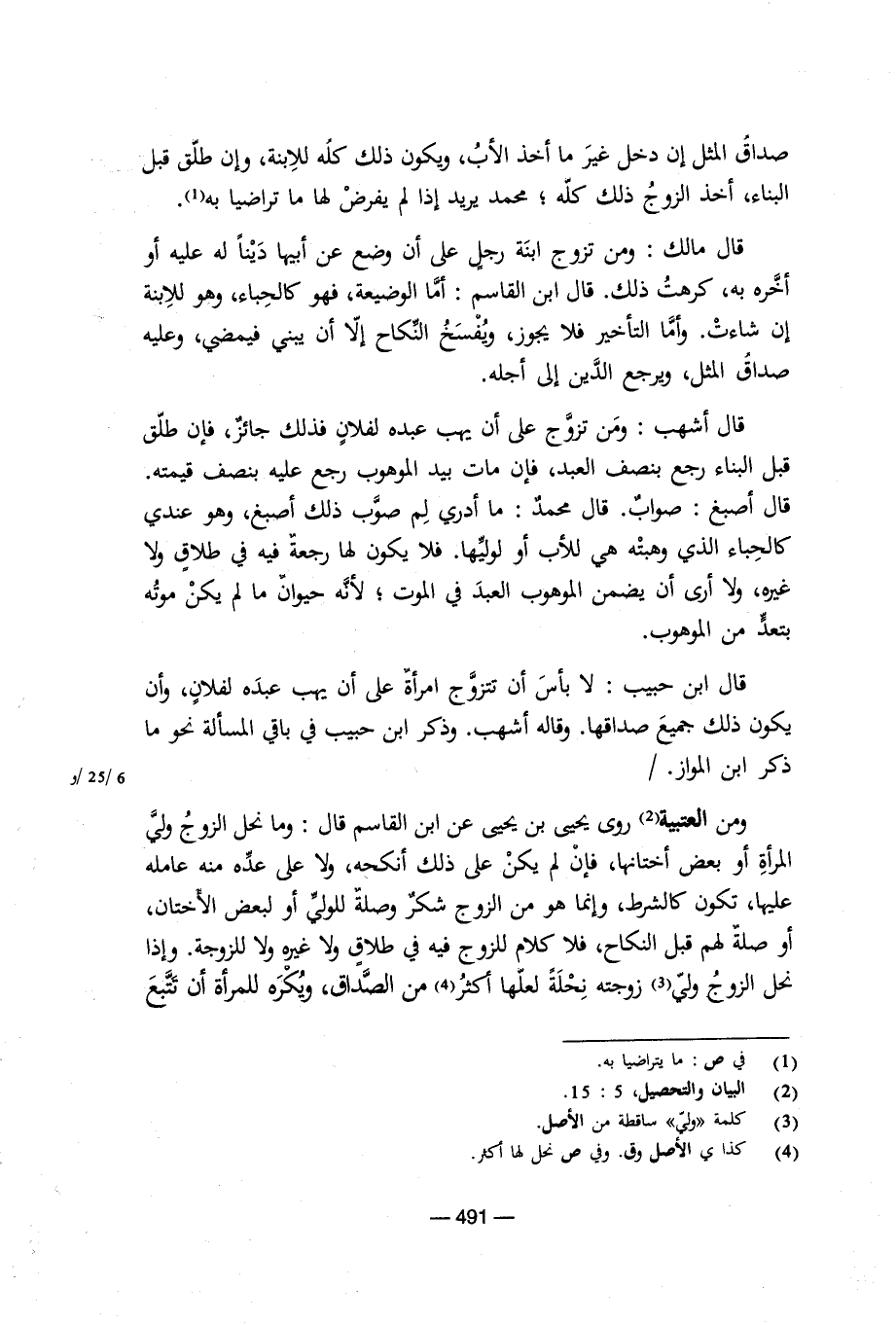 ومن العتبية روى يحيى بن يحيى عن ابن القاسم قال: وما نحل الزوج ولى المرأة او بعض أختانها، فإن لم يكن على ذلك انكحه، ولا على عده منه عامله عليها، تكون كالشرط، وإنما هو من الزوج شكر وصلة للولى أو لبعض الأختان، او صلة لهم قبل النكاح، فلا كلام للزوج فيه فى طلاق ولا غيره ولا للزوجة. وإذا نحل الزوج ولى زوجته نحلة لعلها أكثر من الصداق، ويكره للمرأة أن تتبع