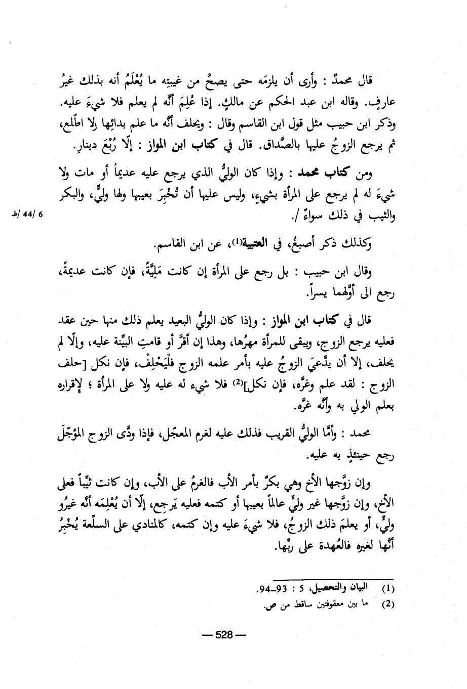 وكذلك ذكر أصبغ، فى العتبية، عن ابن القاسم.