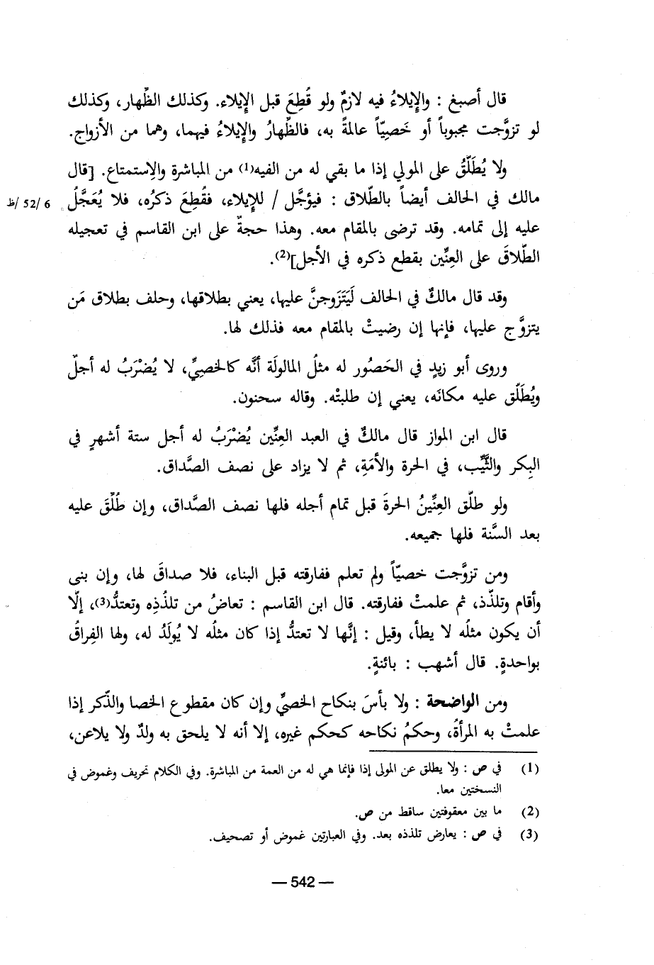 ولا يطلق على المولى إذا ما بقى له من الفيه من المباشرة والاستمتاع. قال مالك فى الحالف أيضا بالطلاق: فيؤجل للإيلاء، فقطع ذكره، فلا يعجل عليه إلى تمامه. وقد ترضى بالمقام معه. وهذا حجة على ابن القاسم فى تعجيله الطكلاق على العنين بقطع ذكره فى الأجل. وقد قال مالك فى الحالف ليتزوجن عليها، يعنى بطلاقها، وحلف بطلاق من يتزو عليها، فإنها إن رضيت بالمقام معه فذلك لها.