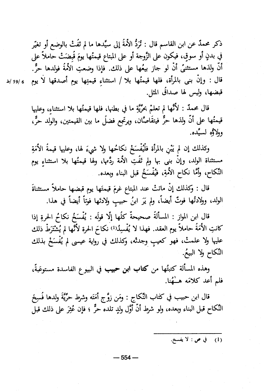 وهذه المسألة كتبتها من كتاب ابن حبيب فى البيوع الفاسدة مستوعبةً، فلم أعد كلامه ههنا.