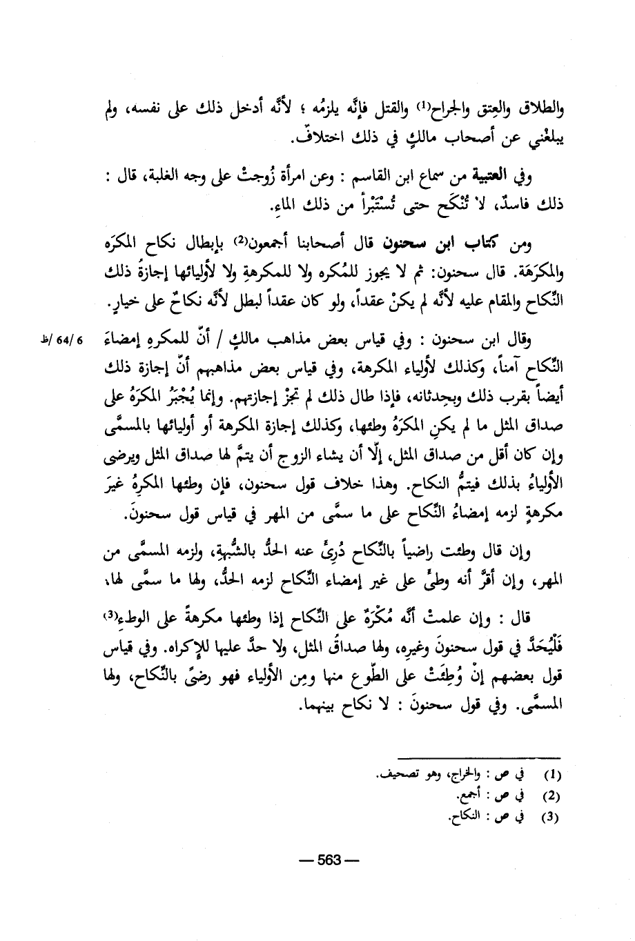 وفي العتبية من سماع ابن القاسم وعن امراة زوجت على وجه الغلبة قال ذلك فاسد لا تنكح حتى تستبرا من ذلك الماء.