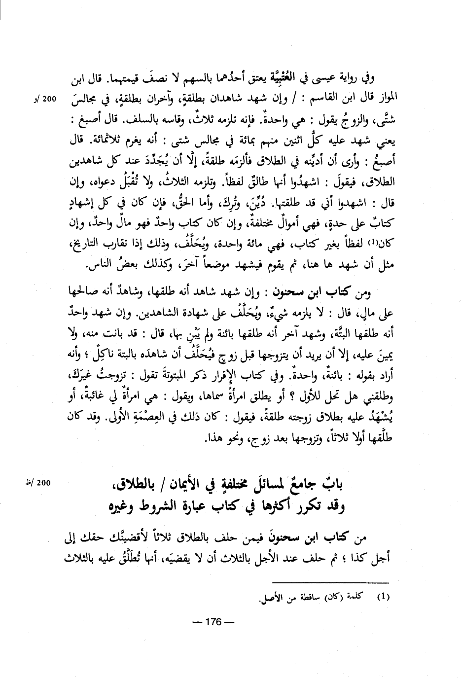 باب جامع لمسائل مختلفة في الأيمان/ بالطلاق، وقد تكرر أكثرها في كتاب عبارة الشروط وغيره