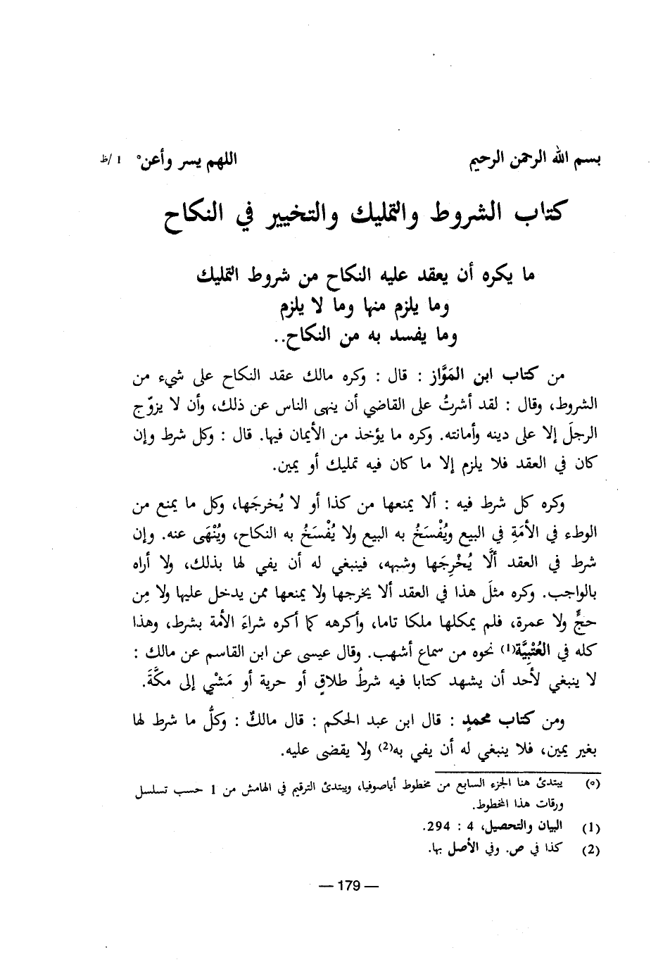 كتاب الشروط والتمليك والتخيير في النكاح