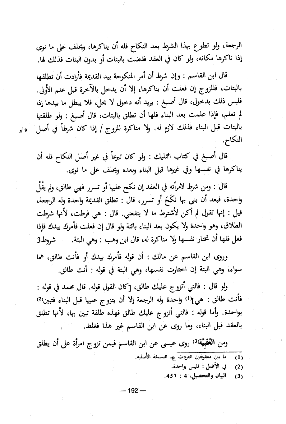 ومن العتبية روى عيسى عن ابن القاسم فيمن تزوج امرأة على أن يطلق [5/ 192]