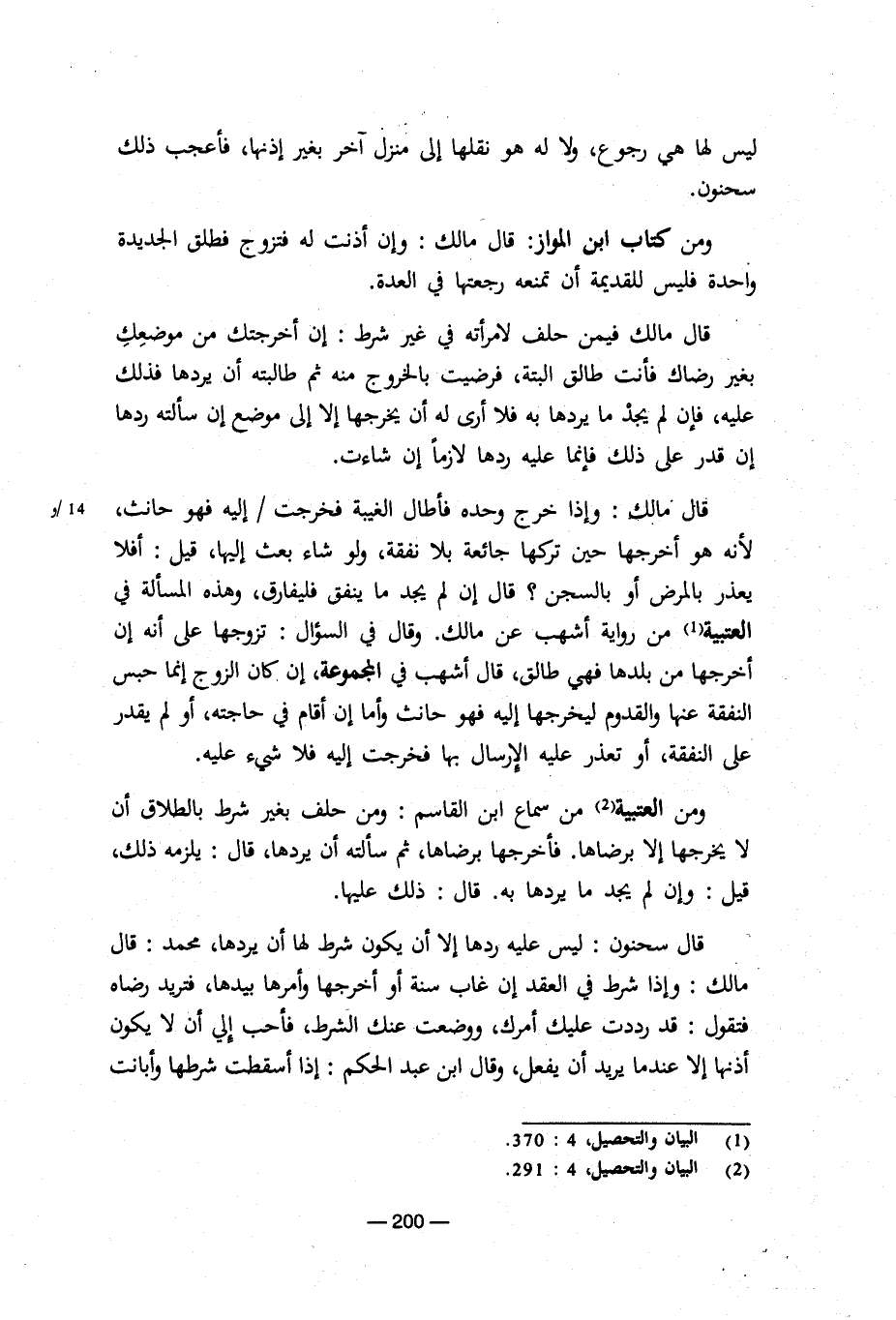 قال مالك: وإذا خرج وحده فأطال الغيبة فخرجت/ إليه فهو حانث، لأنه هو أخرجها حين تركها جائعة بلا نفقة، لو شاء بعث إليها، قيل: أفلا يعذر بالمرض أو بالسجن؟ قال إن لم يجد ما ينفق فليفارق، وهذه المسألة في العتبية من رواية أشهب عن مالك. وقال في السؤال: تزوجها على أنه إن أخرجها من بلدها فهي طالق، قال أشهب في المجموعة، إن كان الزوج إنما حبس النفقة عنها والقدوم ليخرجها إليه فهو حانث وأما إن أقام في حاجته، أو لم يقدر على النفقة، أو تعذر عليه الإرسال بها فخرجت إليه فلا شيء عليه.