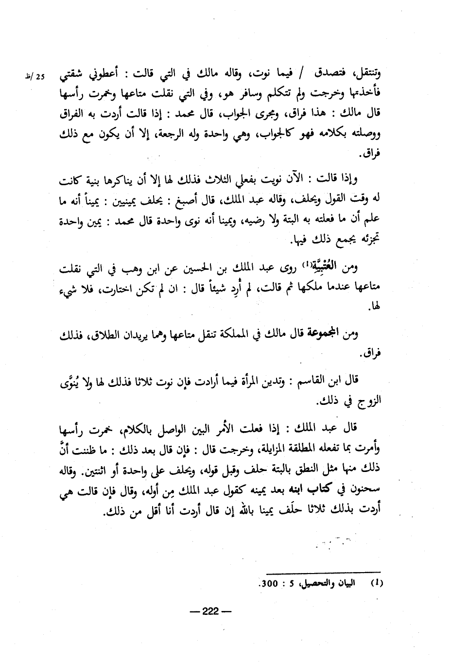 ومن المجموعة قال مالك في المملكة تنقل متاعها وهما يريدان الطلاق، فذلك فراق.