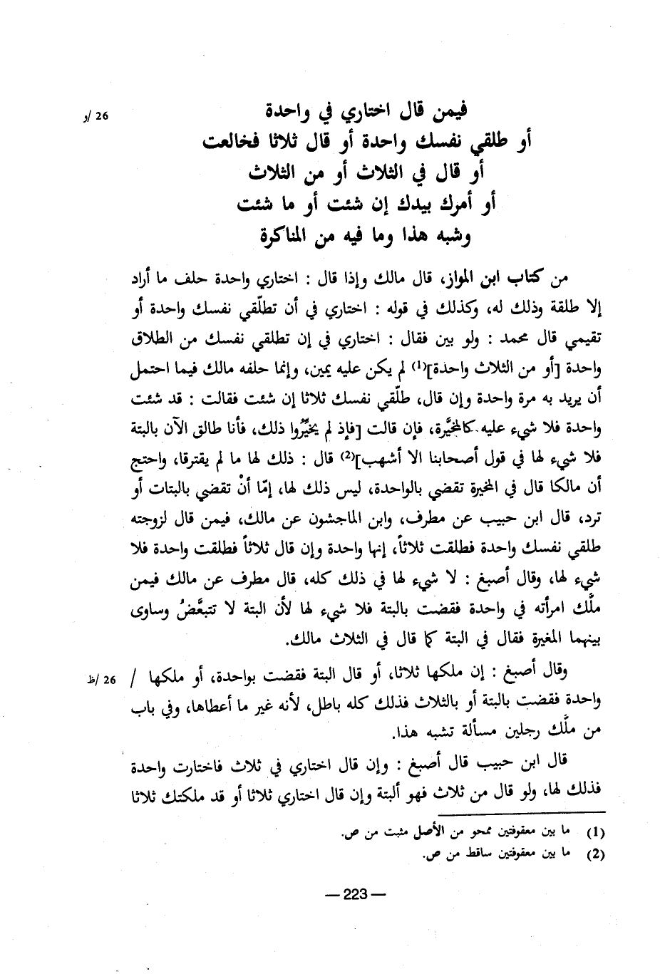 قال ابن حبيب قال أصبغ: وإن قال اختاري في ثلاث فاختارت واحدة فذلك لها، ولو قال من ثلاث فهو ألبته وإن قال اختاري ثلاثا أو قد ملكتك ثلاثا [5/ 223]