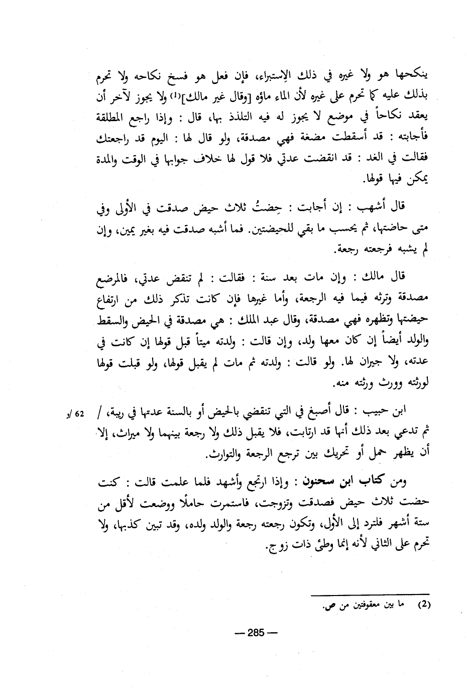 ومن كتاب ابن سحنون: وإذا ارتجع واشهد فلما علمت قالت: كنت حضت ثلاث حيض فصدقت وتزوجت، فاستمرت حاملا ووضعت لأقل من ستة أشهر فلترد إلى الأول، وتكون رجعته رجعة والود ولده، وقد تبين كذبها، ولا تحرم على الثاني لأنه إنما وطئ ذات زوج. [5/ 285]