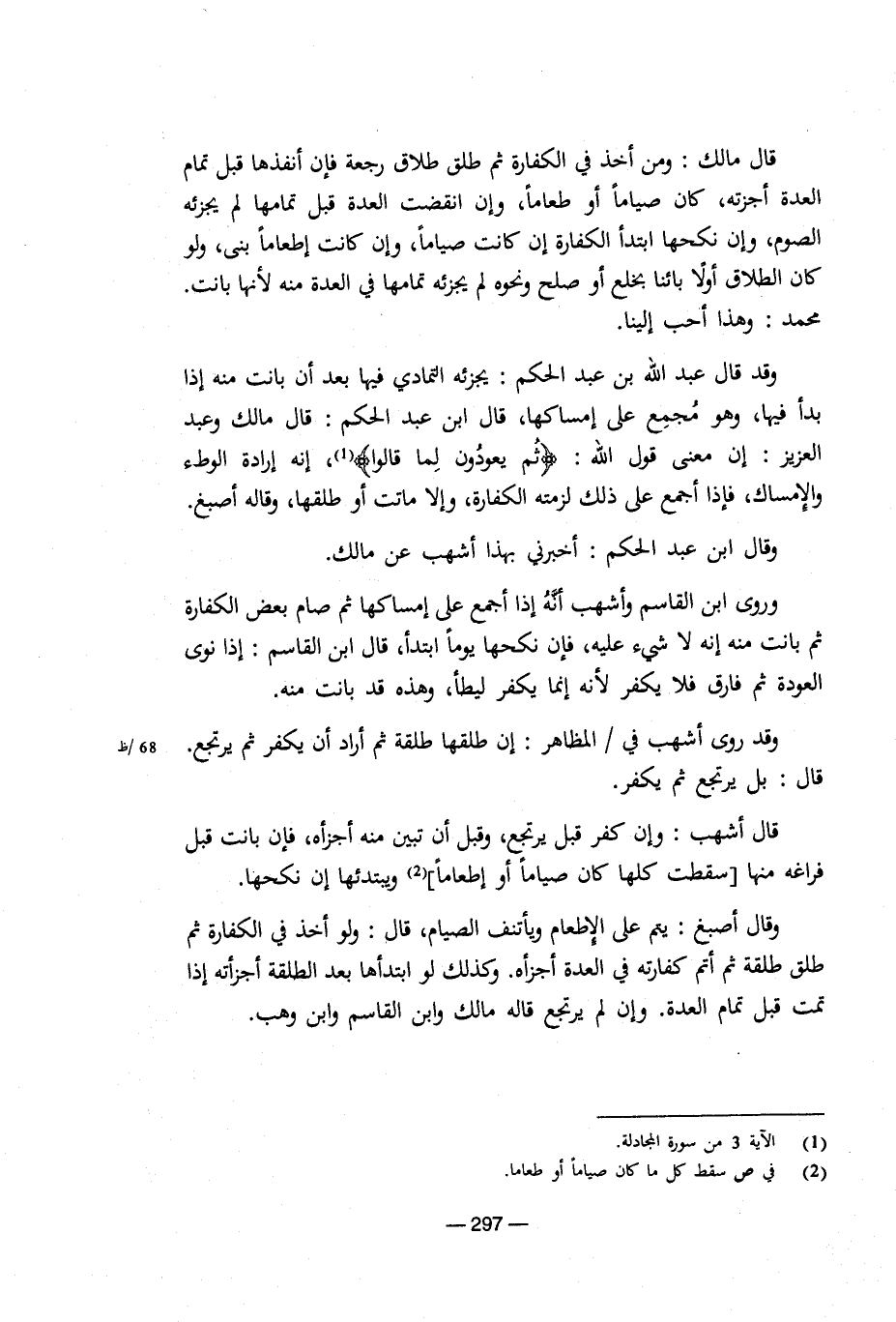 وقال أصبغ: يتم على الإطعام ويأتنف الصيام، وقال: ولو أخذ في الكفارة ثم طلق طلقة ثم أتم كفارته في العدة أجزأه. وكذلك لو ابتدأها بعد الطلقة أجزأته إذا تمت قبل تمام العدة. وإن لم يرتجع قاله مالك وابن القاسم وابن وهب. [5/ 297]