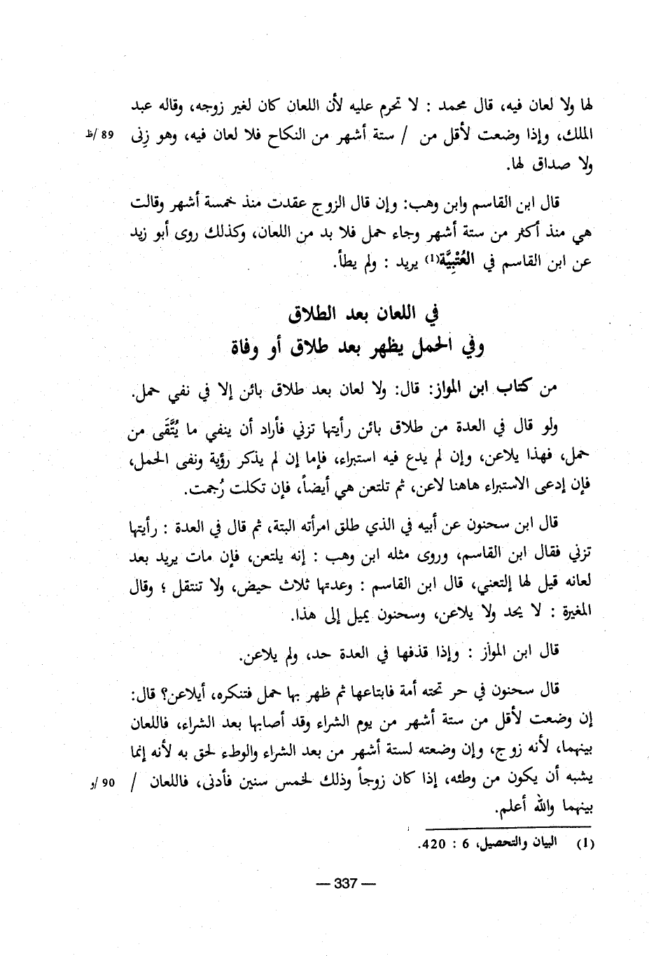 من كتاب ابن المواز: قال: ولا لعان بعد طلاق بائن إلا في نفي حمل.