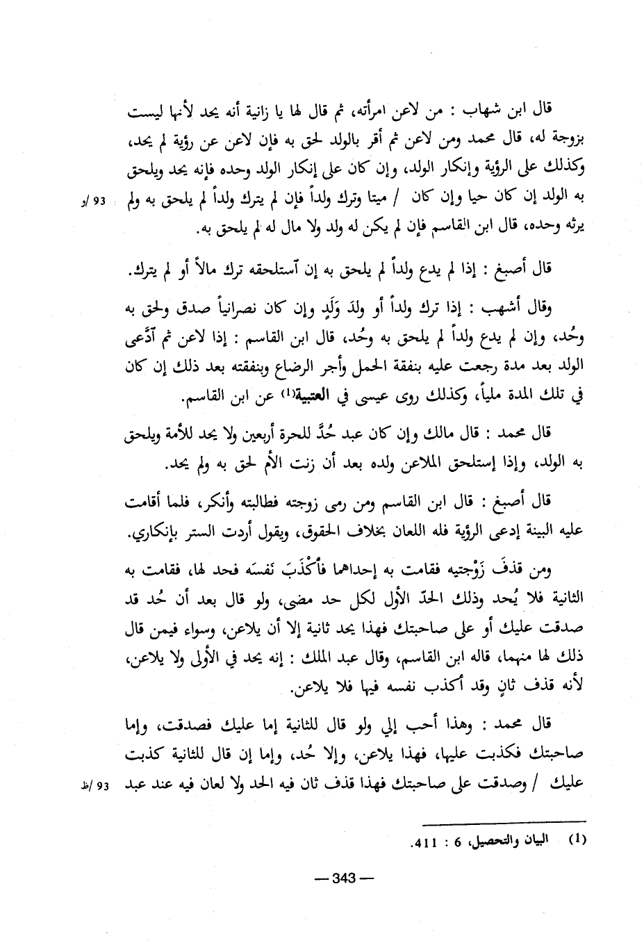 قال محمد: وهذا أحب إلي ولو قال للثانية إما عليك فصدقت، وإما صاحبتك فكذبت عليها، فهذا يلاعن، وإلا حد، وإما إن قال للثانية كذبت عليك/ وصدقت على صاحبتك فهذا قذف ثان فيه الحد ولا لعان فيه عند عبد [5/ 343]