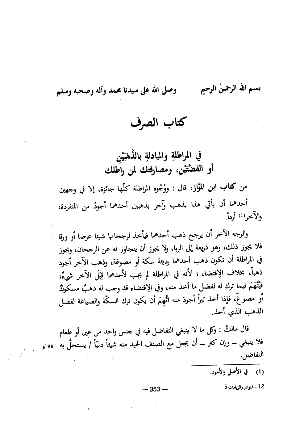 من كتاب ابن المواز، قال: ووجوه المراطلة كلها جائزة، إلا في وجهين أحدهما أن يأتي هذا بذهب وآخر بذهبين أحدهما أجود من المنفردة، والآخر أردأ.