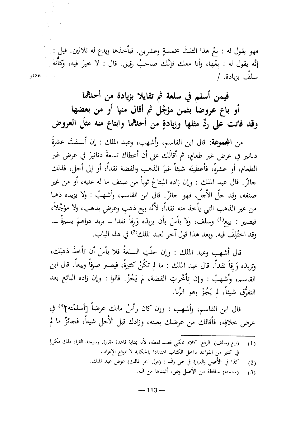 أو باع عروضًا بثمن مؤجل ثم أقال منها أو من بعضها