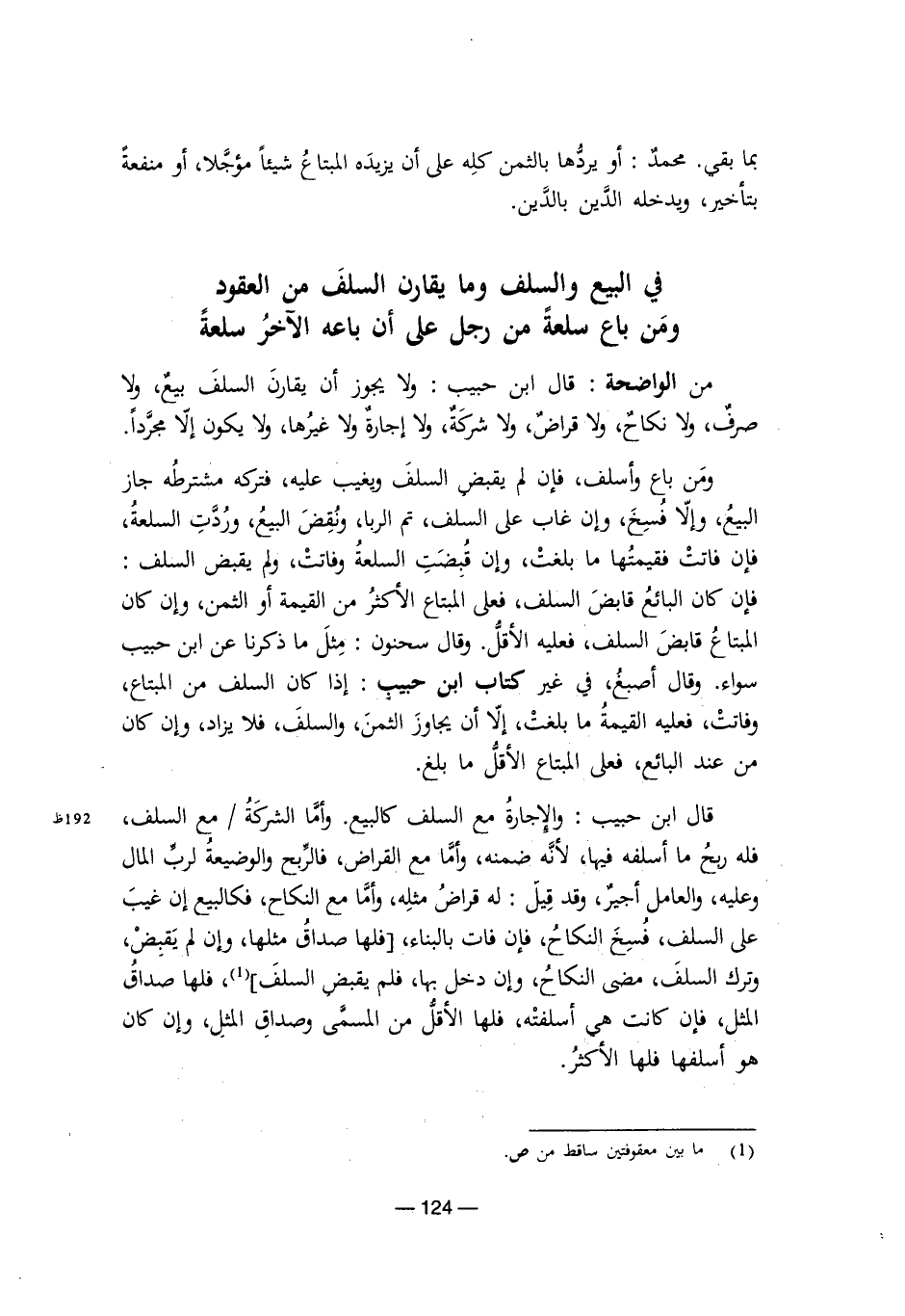 من الواضحة: قال ابن حبيب: ولا يجوز أن يقارن السلف بيع، ولا صرف، ولا نكاح، ولا قراض، ولا شركة، ولا إجارة ولا غيرها، ولا يكون إلا مجردًا.