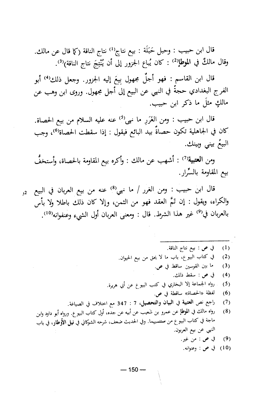 قال ابن حبيب: وحبل حبلة: بيع نتاج نتاج الناقة كما قال عن مالك. وقال مالك في الموطأ: كان يباع الجزور إلى أن ينتج نتاج الناقة.
