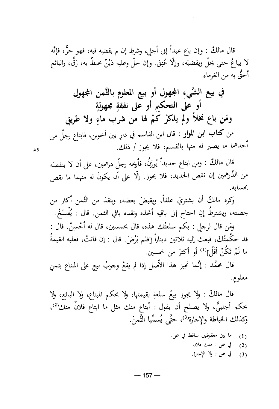 قال محمد: إنما نجيز هذا الأصل إذا لم يقع وجوب بيع على المبتاع بثمن معلوم.
